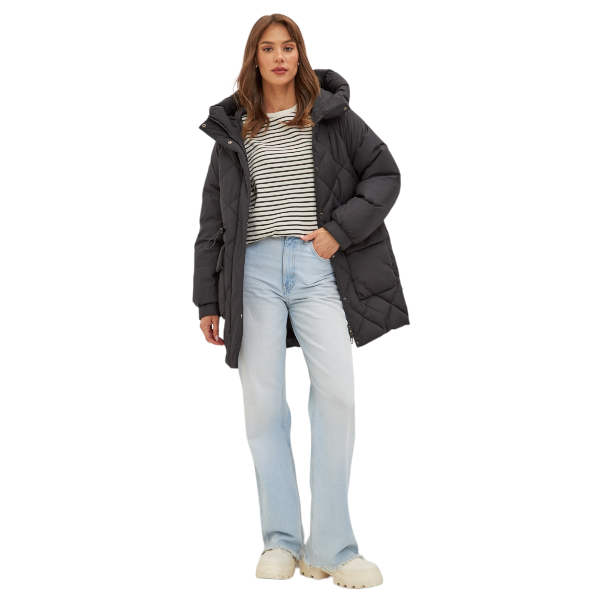 Женская зимняя куртка LaWinter — это сочетание современных технологий и элегантного дизайна. Продуманность конструкции и высокое качество материалов делают эту модель не просто элементом гардероба, но и надежным выбором в холодное время года. Черный цвет куртки легко сочетается с любым стилем одежды, придавая образу завершенность и утонченность. Мембранная ткань на полиэстеровой основе гарантирует отличные водонепроницаемые и ветрозащитные свойства. Фактура текстиля придает изделию особенный вид и комфорт во время ношения. Утеплитель из био-пуха обеспечивает оптимальную теплозащиту, сохраняя при этом малый вес. Два боковых кармана позволят не только хранить небольшие повседневные вещи, но и греть руки в сильные морозы. Объемный капюшон может с легкостью заменить шапку, а воротник-стойка защитит от пронизывающего ветра. Куртка LaWinter, отличаясь высоким качеством сборки, сохранит свой актуальный внешний вид даже после интенсивного ношения и станет незаменимой в зимний период, подчеркнув индивидуальность в зимний период.Характеристики: